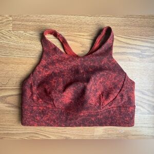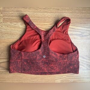Excellent used condition. Size 14. Color is Denim Wash Print Autumn Red Black. Stylish and supportive sports bra. Ideal for active wear.