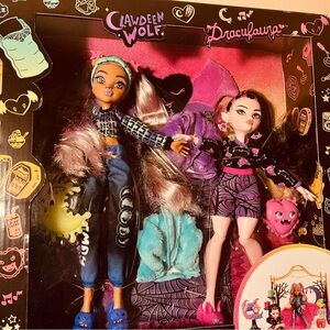 Monster high Clawdeen Wolf and Draculaura with bedroom set, new
