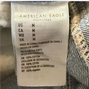 Women’s American Eagle Distressed Denim Overalls. Medium