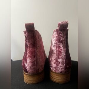 Elegant velvet booties with a soft rose hue. Perfect for stylish outings.