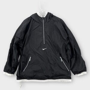 Nike Windbreaker Womens Medium Black White Center Swoosh Jacket Y2K 1/4 Zip