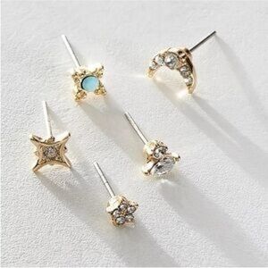 Features: Set of 10 earrings, 5 pairs, all with stone accents, post-back design