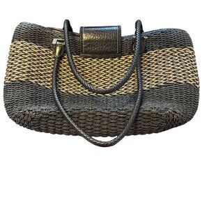 The Savannah Black & Tan Braided Woven Handbag By Brighton With Heart Charm Acce