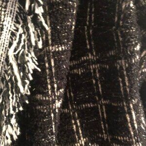 Plaid Boucle Jacket with Fringe Open Front Black Silver Sparkle Joan Rivers 1x