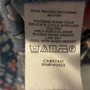 Elegant blouse with floral design. Features blue and pink flowers. Perfect for any occasion.