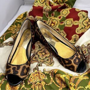 MICHAEL Michael Kors Cheetah Peep Toe Low Wedge