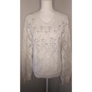 🧥 Red by BKE White Pointelle Eyelet Sweater – Rhinestone Detail, Perfect for Layering ✨ Size: M 🌟 Condition: Excellent Used Condition (EUC) – No rips, stains, or tears. 🎨 Style: Pointelle Knit • Eyelet Detail • Rhinestone Accents • Lightweight Layering • Feminine Casual • Soft Textured Knit • Delicate & Pretty • Boutique Vibes • Versatile Everyday Piece • Subtle Sparkle • Cozy Chic 📸 All items are carefully photographed and recorded prior to packing and during the packaging process to ensure the utmost protection for both the buyer and myself. Colors may vary slightly due to lighting. ❓ Got a question? Just ask! I'm always open to offers. 😊