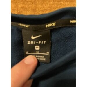 The NIKE Pro X Fleece Training Sweatshirt is a comfortable and versatile pullover designed for men in size medium. Made of 100% polyester fleece, this sweatshirt features a high neckline with a 1/4 zip closure for a modern and stylish look. The dark blue color and athletic fit make it suitable for various activities such as soccer and football, while the stretch fabric ensures a comfortable and breathable feel. Perfect for casual wear, activewear, or travel, this Nike Dri-Fit model is a must-have for the winter, fall, and spring seasons.
