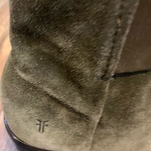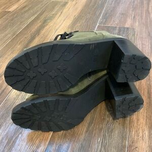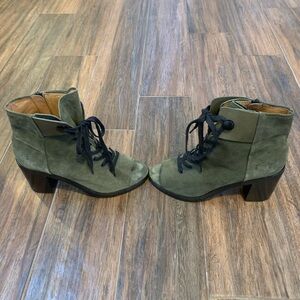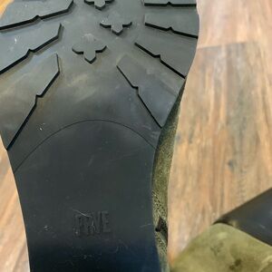 Frye Women’s Danica Lug Lace Up Zip Green Suede Peep Toe Boots Size 10 M. Pre-owned. Excellent condition.