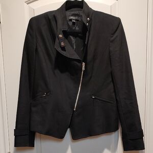 Ann Taylor Black Zip-Front Blazer Mock Neck Button Up