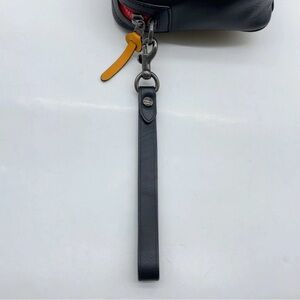 Auth Coach Signature Beige Black PVC Leather Clutch Bag W/Dust bag