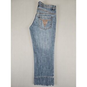 American Eagle Jeans Women's 2 25x31 Festival Flare Faded Stretch Raw Hem BOHO