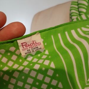Vibrant green and white patterned fabric by Paoli. Perfect for crafting or decor.