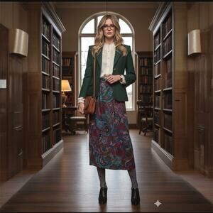 Vintage Diane von Furstenberg DVF Midi Skirt SZ 16 Paisley Fairy Dark Academia