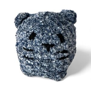 Adorable blue knitted cat plush, perfect for cozy cuddles for little ones, a cute travel companion, or a stylish addition to your room. Velvet like texture. Made out of 100% polyester yarn. Fits in the palm of your hand.