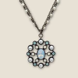 Blue Opal Glass & Faux Pearl Medallion Necklace – Cookie Lee