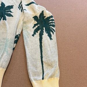 Stylish knit sweater with striped pattern. Features cream and green hues.