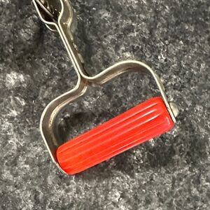 Vintage Stainless Steel Hand Mixer with Red Handle