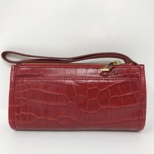 DKNY Red Croc Leather Wallet Wristlet – Gold Hardware