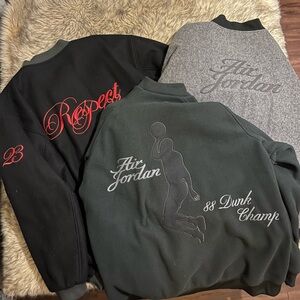 Worn 1 time , excellent condition. Elevate your look with this Jordan bomber jacket. Sleek black with striking red panels. Perfect for casual outings.