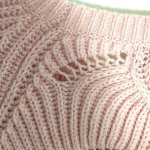 A new day Scalloped Seashell Sweater Women's S Pink Metallic Long Sleeve Knit