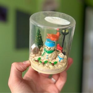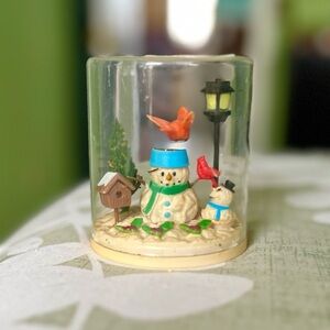 Vintage Encased Winter Snowman With Bird & Lamp Post Festive Decorative Art 3D