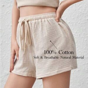 These cream high waist shorts from SHEIN offer a relaxed fit with a soft, breathable texture. The elastic waistband ensures a comfortable and adjustable fit, making them perfect for casual lounging.