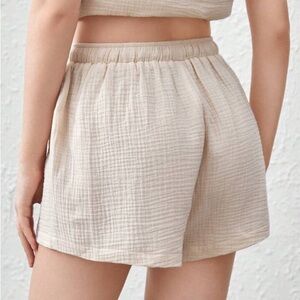 SHEIN Cream High Waist Shorts with Elastic Waistband, Size S