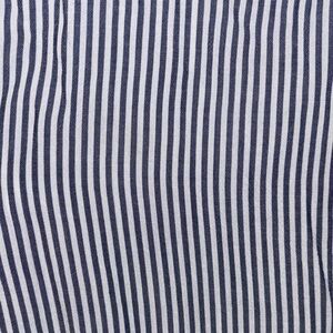 Chic navy and white stripes. Button-down design. Dual chest pockets. Long sleeves with button cuffs.