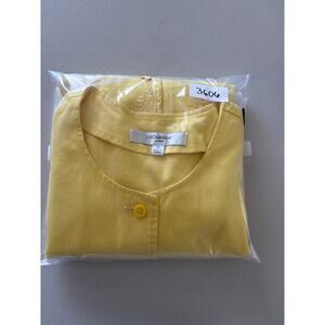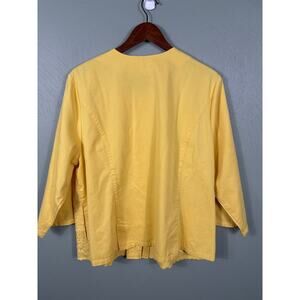 Liz Claiborne Women Size XL Yellow Button Front Floral Embroidered Pocket Blouse