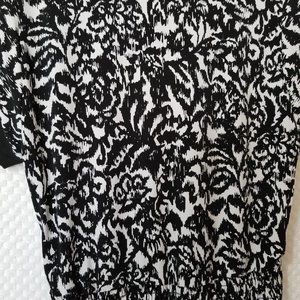 Alfani Floral Pullover Top Round Neckline Short Sleeves Black White Print Small