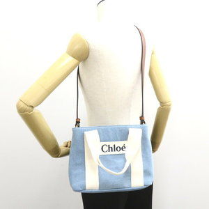Chloe Shoulder Bag Denim Blue Ivory White Strap Brown