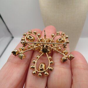 Vintage DeCurtis Pink and Clear Rhinestone 12K Gold Filled Gold Tone Brooch Pendant. Can be worn as a brooch of pendant. Approximately 1.5 inches in size.