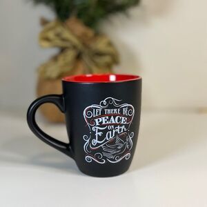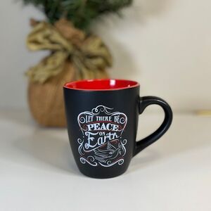 NEW Holiday Chalk Style “Peace on Earth” Coffee Tea Mug Cup, Black