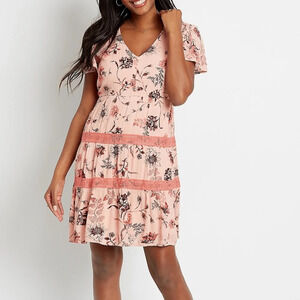 Maurices Pink Floral Lace Trim Baby doll Dress Size M