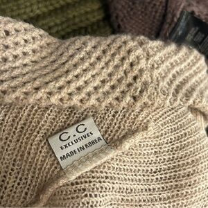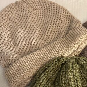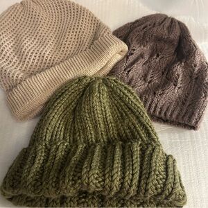Purchased over time and are unused. ... really cute, deserving their time to shine. Gorgeous colors and patterns.. green Chunky Knit, brown Lace Knit, beige Honeycomb Knit.