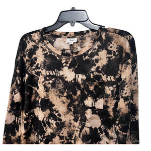 JENNI WOMENS XSMALL LONG SLEEVE SUPER SOFT SLEEP SHIRT TIEDYE PRINT BLACK TAN