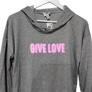 JENNI WOMENS XSMALL CASUAL LOUNGE 'GIVE LOVE' HOODIE HEATHER GREY NEW!