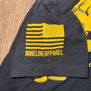 Black t-shirt featuring a yellow graphic of a bear with a humorous quote.