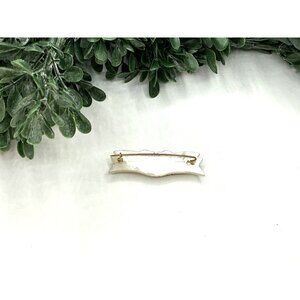 Vintage Mother Of Pearl Brooch Pin With Gold-Tone Script Design