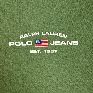Polo Jeans Ralph Lauren Ringer Essential Shirt Large Green Yellow Preppy Basic