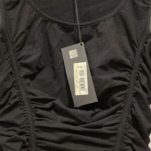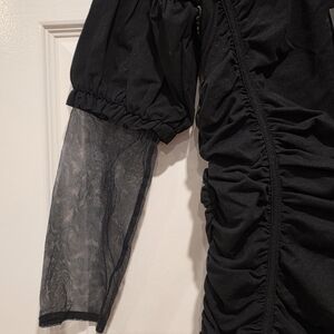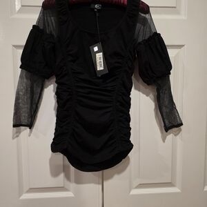 Sophisticated black shirt featuring elegant ruching and sheer accents. Ideal for any event. Just cavalli. Size 44. New.