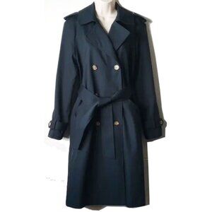 Sezane Scott Trench Coat 34 2 Marine Cotton Double Breasted Midi