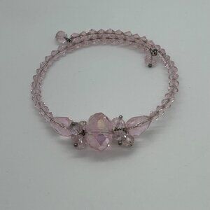 Adjustable Retro Pink Bracelet Glass Beads On Memory Wire Prom Quinceañera