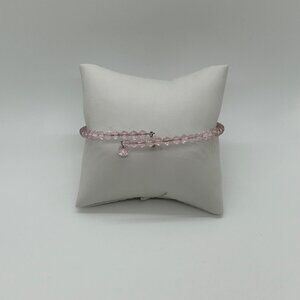 This vintage-inspired bracelet features delicate pink glass beads and an adjustable memory wire, blending antique charm with functional design.
