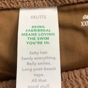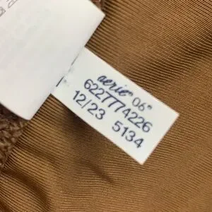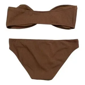 Aerie Crinkle Ring Bandeau Bikini Top and matching Aerie Crinkle Full Coverage Bikini Bottom in dark brown.