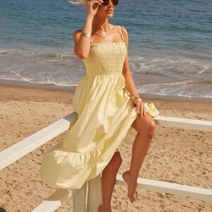 VICI Collection Fawn Smocked A-Line Midi Dress Adjustable t-straps Size Medium