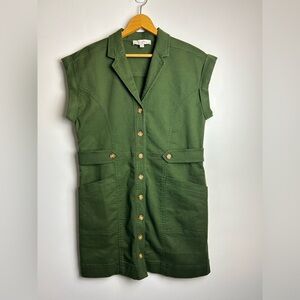 Loft Utility Mini Pocket Shirtdress 8 Green Button-Down Dress Old Money 2024