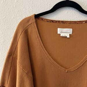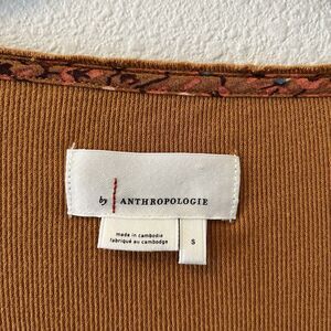 Anthropologie Women's Thermal Top Size Small Floral Sleeve Brown Boho Autumnal