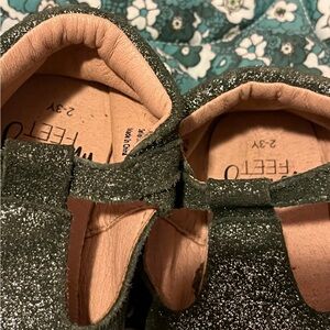 Monkey Feet 2/3 yr fits 7-8c forest green shimmery t-strap shoes in really good used condition. We loved these for every holiday outfit!